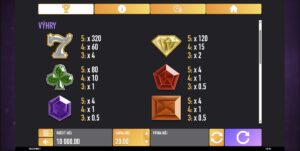 Vývojářem tohoto herního titulu je společnost Tech4bet, jedná se o českou bandu profíků, která se na poli online hazardu objevila v roce 2019, dali hlavy dohromady a vyprodukovali mnoho skvělých titulů, mezi nimiž se nachází i tento slot. Září jako diamant. No, aby ne! Hlavním tématem není nic jiného než tyto drahé a blyštivé kameny, které se rozprostírají na herní mřížce 5×3. Tento slot je navržen tak, aby byl nejen vizuálně atraktivní, ale také nabízel hráčům zajímavé herní možnosti. RTP (Return to Player) je v tomto případě nastavené na 95 %, což znamená, že se hráčům v průměru vrátí 95 % jejich sázek. Vzhledem k tomu, že se jedná o slot s 243 výherními liniemi, hráči mají široké možnosti, jak dosáhnout výhry. Volatilita slotu je střední, což znamená, že kombinace nižších a vyšších výher zaručuje napínavý herní zážitek bez přílišné nejistoty.
