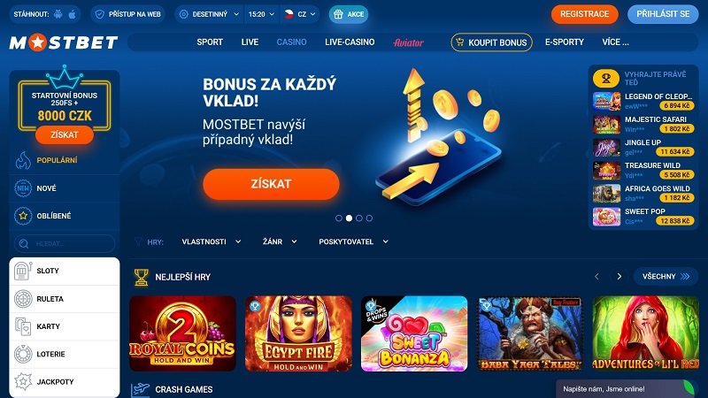 MostBet casinoUvítací bonus: 150% bonus do výše 8 000 Kč + 250 FS Jazyk: 🇨🇿 |