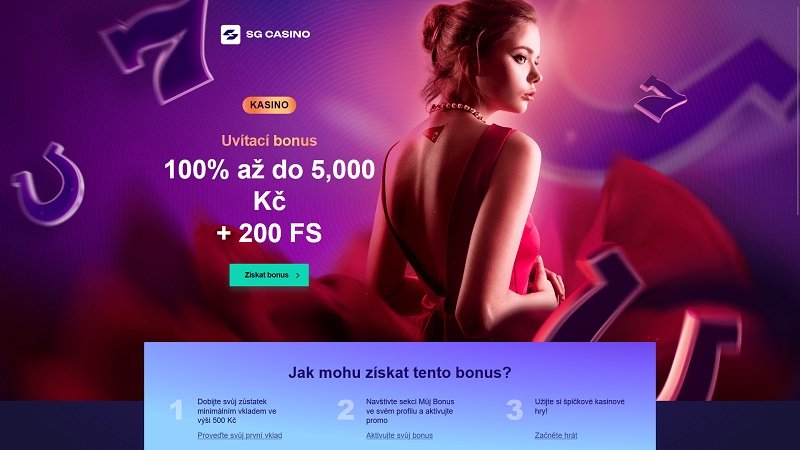 SGcasinoUvítací bonus: 100% bonus do výše 12 500 Kč + 200 FS Jazyk: 🇨🇿 |