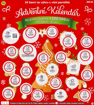 Adventní KalendářHlavní výhra: 1 000 000 Kč Cena: 250 Kč |