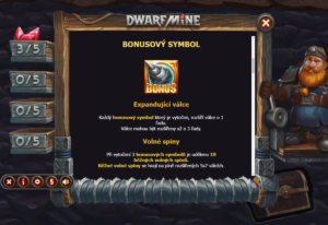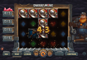 Free spins in Dwarf Mine are activated when 3 Bonus symbols appear on the reels. Players receive 10 free spins played on the newly expanded game grid. Winnings from free spins are added to the winnings from the regular game, meaning every spin can lead to significant profits. However, during this feature, it is not possible to trigger additional free spins, adding an element of tension and strategy.