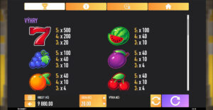 The slot is from the Czech studio Tech4bet, which entered the gaming scene in 2019. This talented team of professionals introduces an online slot that rides the wave of nostalgia and offers players a juicy dose of fun. The slot machine is set on a 5×3 game grid, a proven format that almost every fan of online slots knows. Although it has only 5 paylines, each one has the potential to deliver winnings that will brighten your day. With an RTP set at 96%, the chances of winning are quite decent, which is always good news for players. And what about volatility? It features a medium level. This means players can expect a balanced ratio between more frequent smaller winnings and occasional larger jackpots. For players who prefer tension and excitement, this is the ideal choice. Players can choose from a wide range of betting options. The minimum bet starts at €0.04, which is great news for those who want to try the slot without significant investments. On the other hand, the maximum bet is set at €40, offering opportunities for high rollers who want to test their luck to the fullest. This flexibility in betting options gives players freedom and control over how they decide to play. This game title is fully responsive, meaning you can enjoy it on any device – whether you’re on a computer, tablet, or mobile phone. Modern technology ensures that the game runs smoothly and without problems, even on smaller screens. And what’s more? Players have the opportunity to try the demo version of the slot without needing to register. This is a great opportunity for those who want to test the slot before deciding to invest their money.